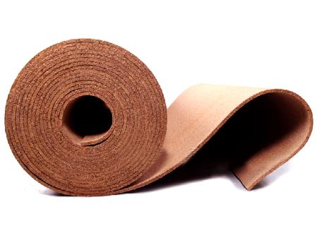 軟木卷材是用天然軟木粒加聚氨酯膠攪拌均勻,經(jīng)過壓制、高溫烘焙定型、養(yǎng)生、旋切、收卷、分切等工序加工而成,故也稱聚氨酯軟木紙。